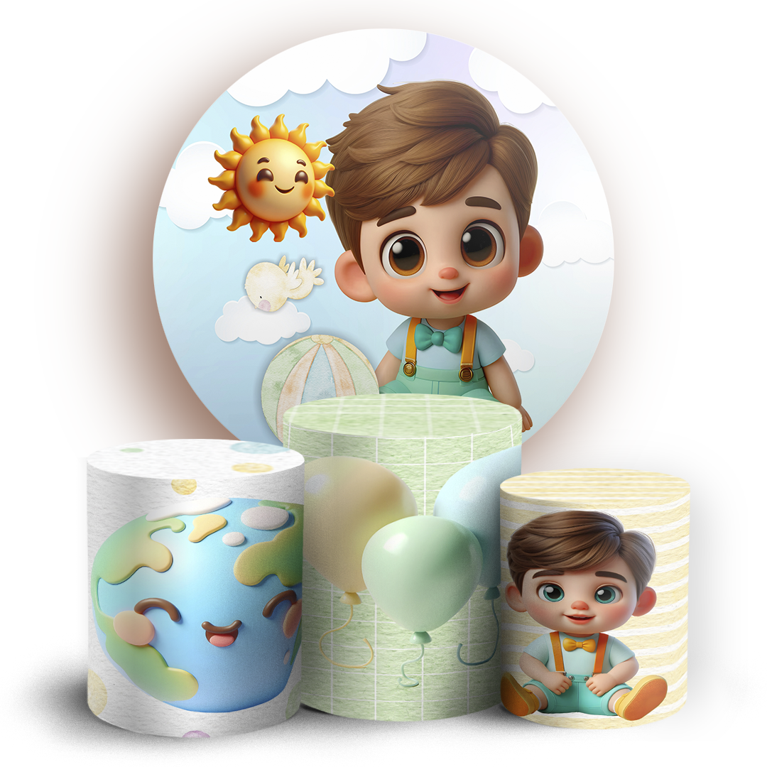 O kit Painel Redondo + Trio de capas para cilindros sublimados veste fácil, possuem acabamento overloque e elásticos nas bordas para facilitar a montagem da decoração