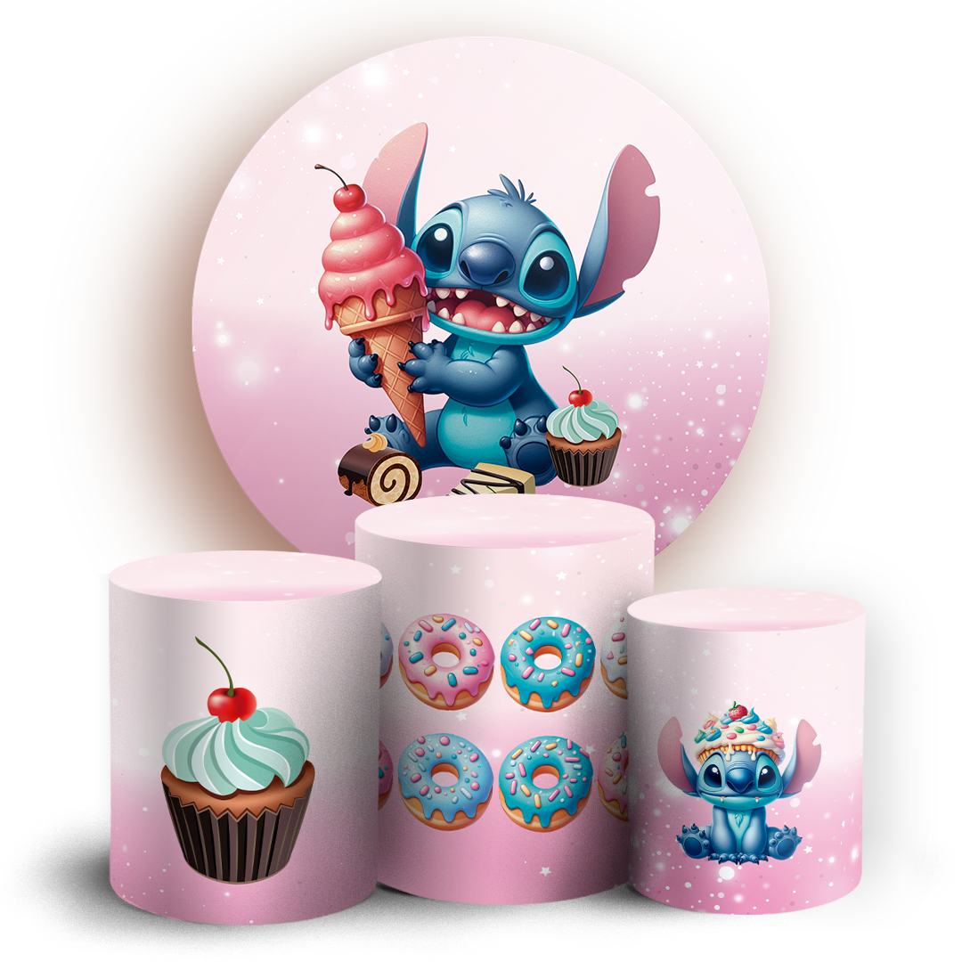 KIT Redondo e Trio - Stitch Confeitaria - Sublimado 3D