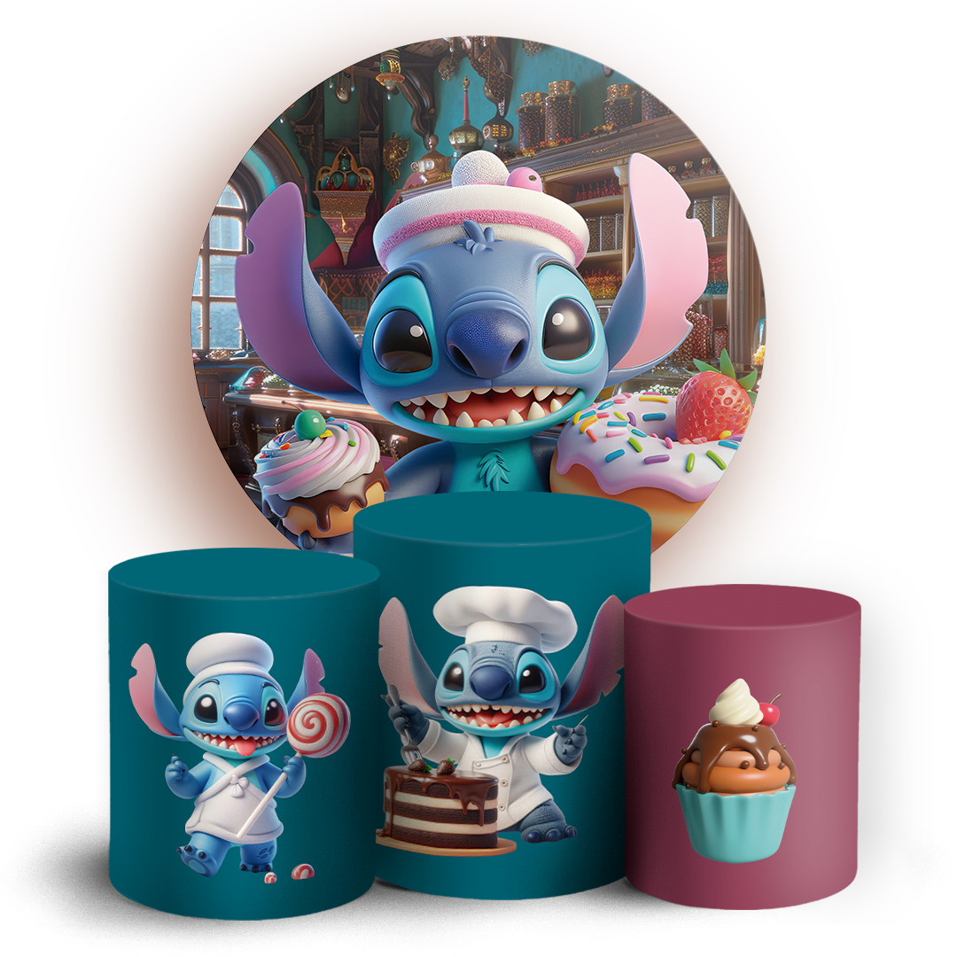 KIT Redondo e Trio - Stitch Confeiteiro - Sublimado 3D