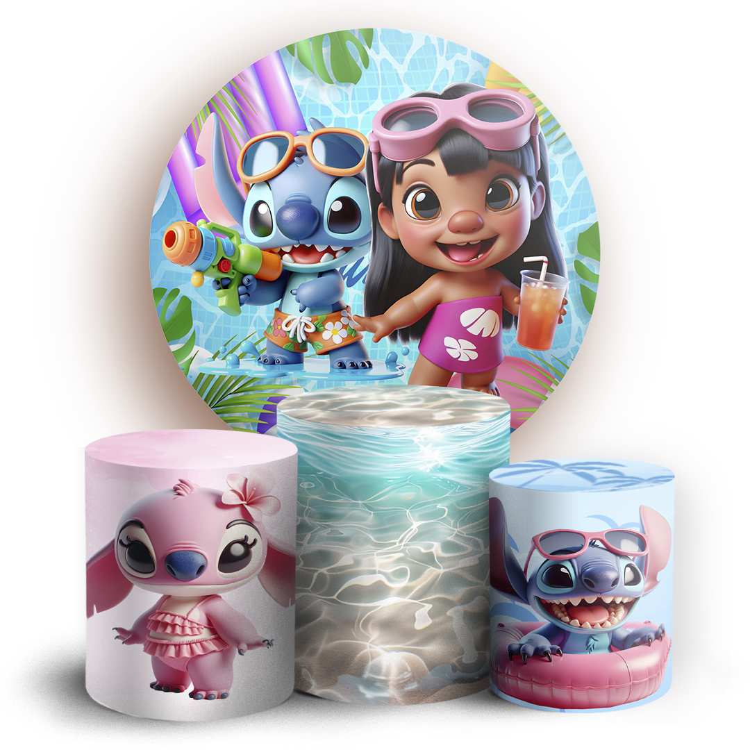 KIT Redondo e Trio - Stitch Pool Party - Sublimado 3D