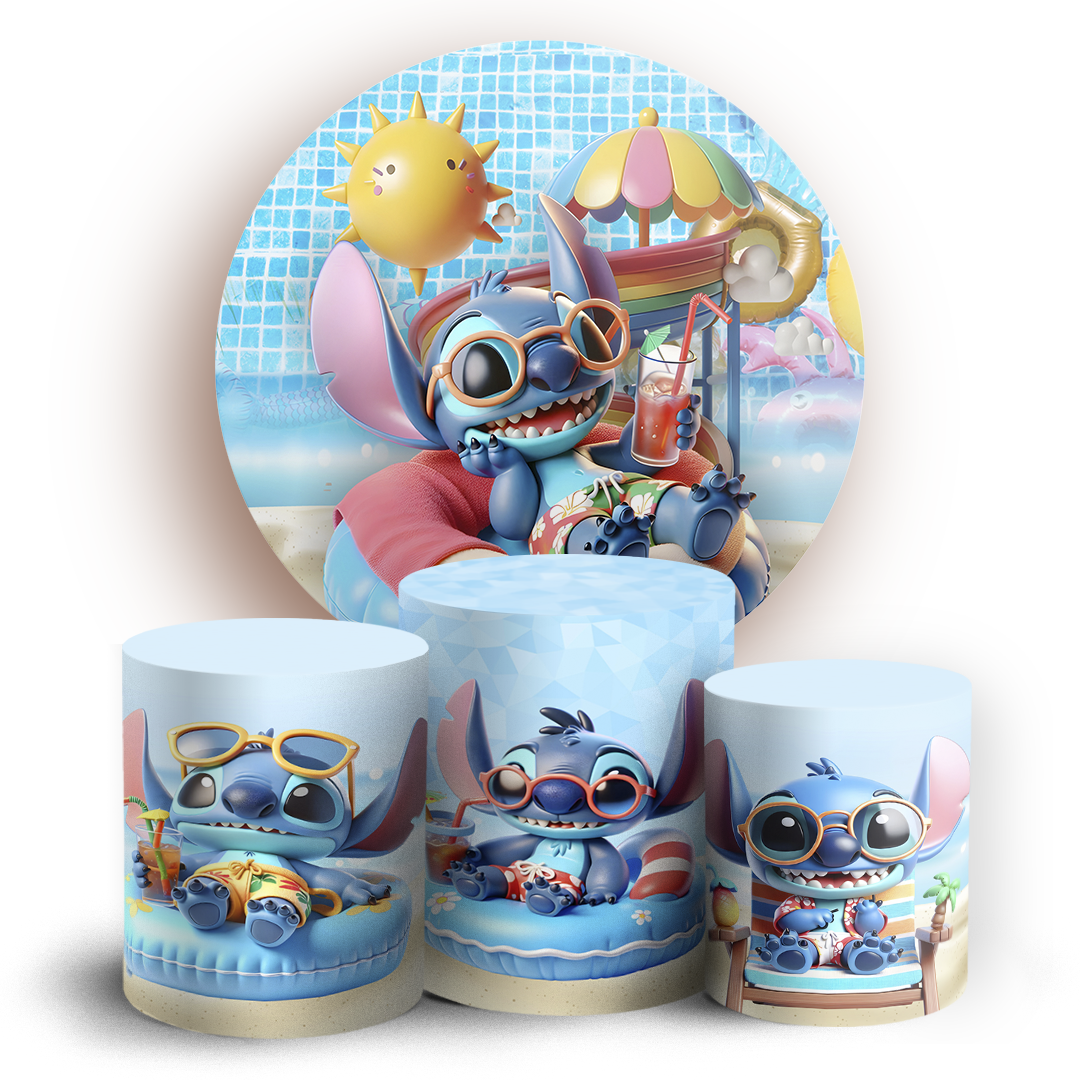 Capas Painel Redondo e Trio Cilindro Sublimado - Stitch Pool Party