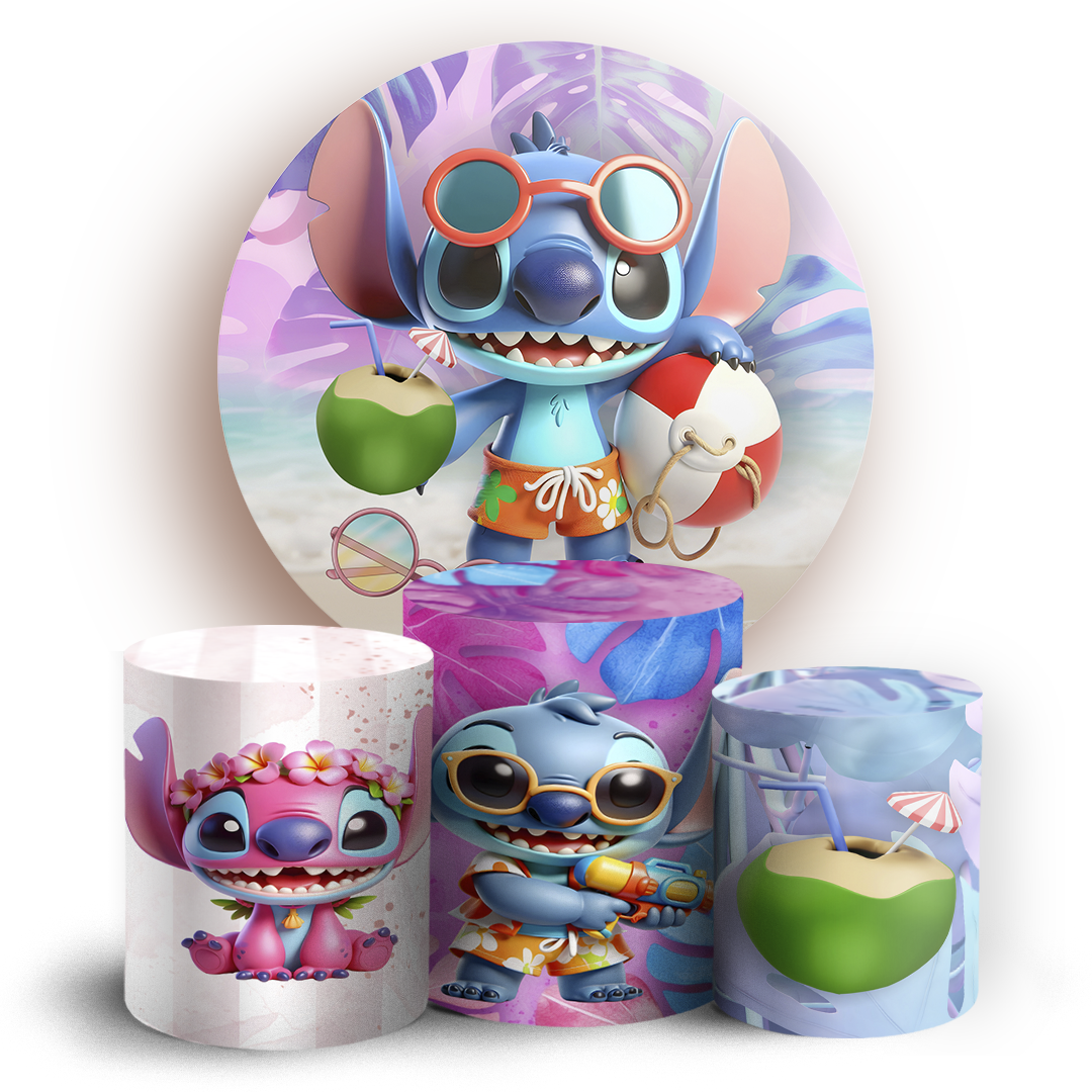 KIT Redondo e Trio - Stitch Pool Party - Sublimado 3D