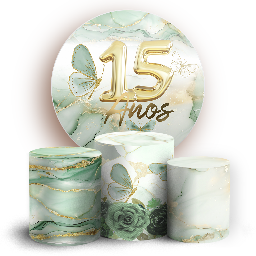 O kit Painel Redondo + Trio de capas para cilindros sublimados veste fácil, possuem acabamento overloque e elásticos nas bordas para facilitar a montagem da decoração