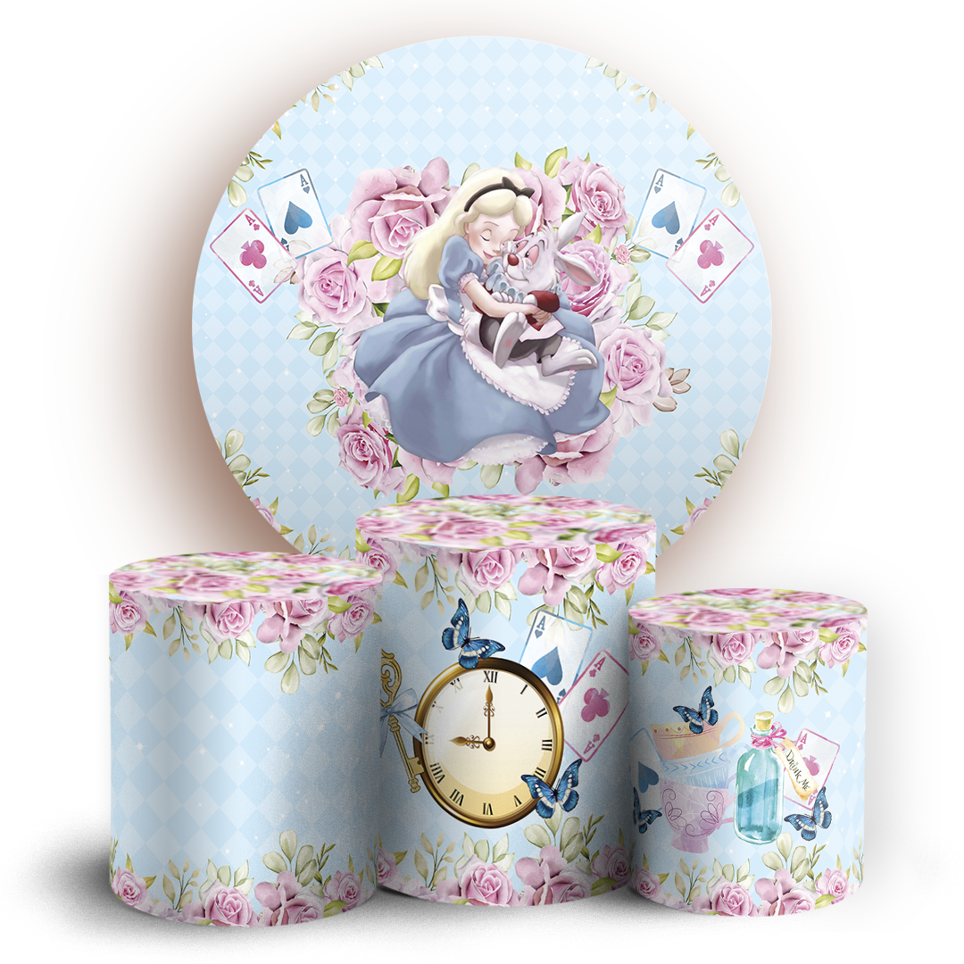 KIT Redondo e Trio Sublimado 3D - Alice no País das Maravilhas