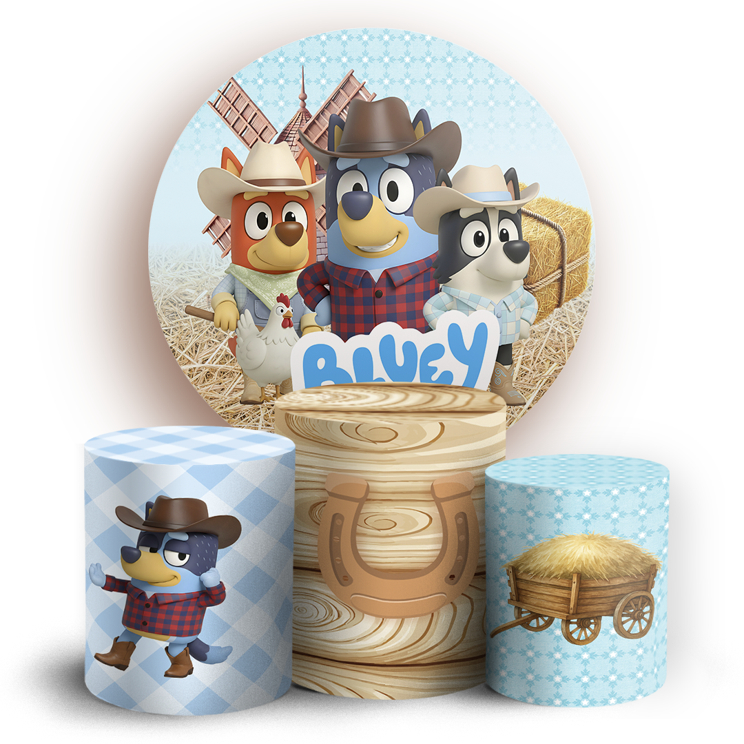 Capas Painel Redondo e Trio Cilindro Sublimado - Bluey Fazendinha