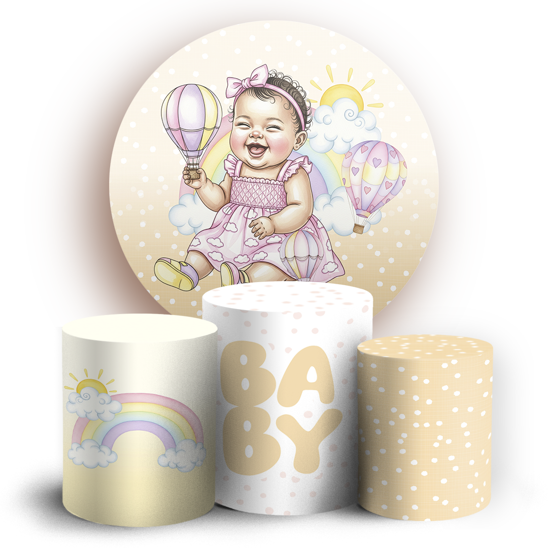 O kit Painel Redondo + Trio de capas para cilindros sublimados veste fácil, possuem acabamento overloque e elásticos nas bordas para facilitar a montagem da decoração