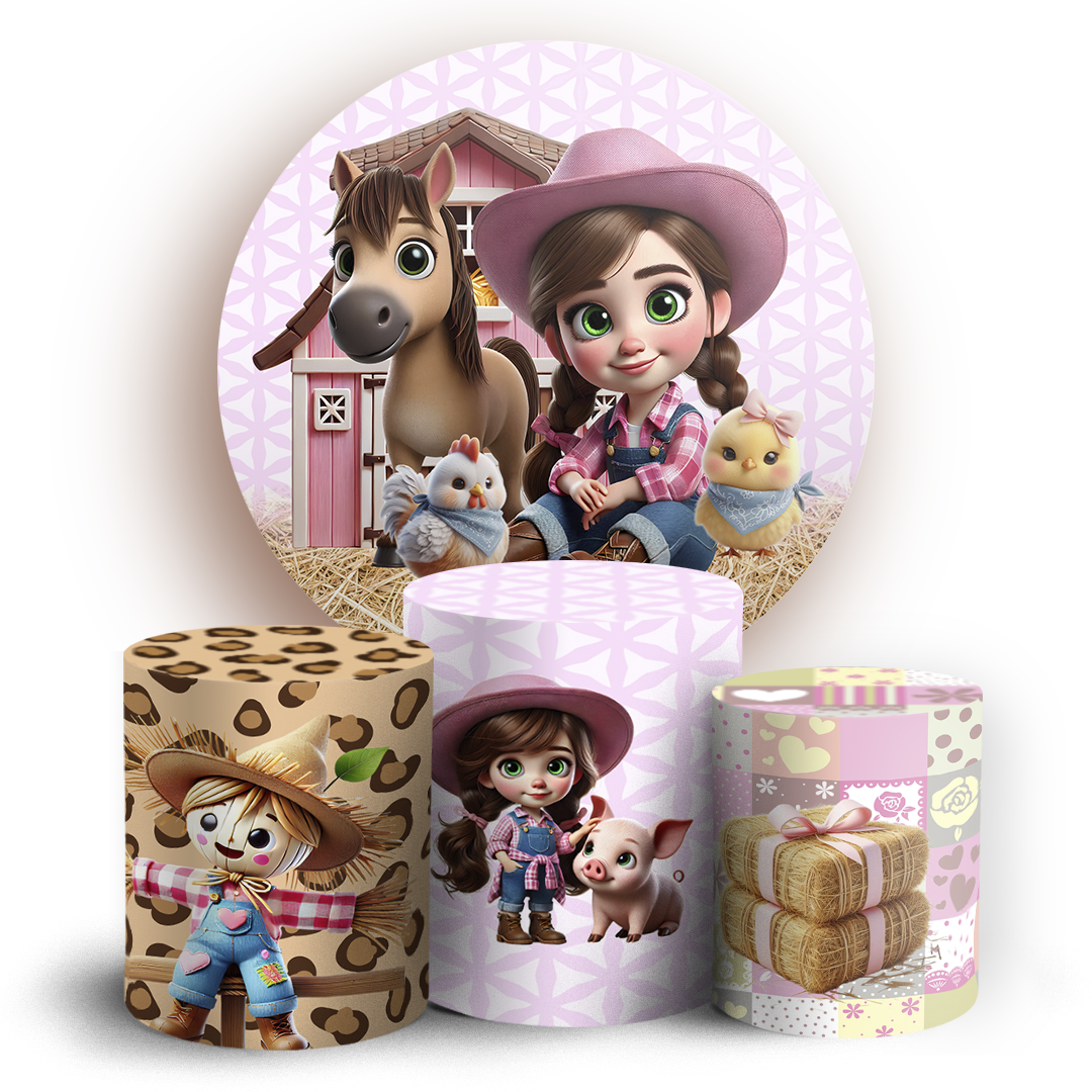 Capas Painel Redondo e Trio Cilindro Sublimado - Fazendinha