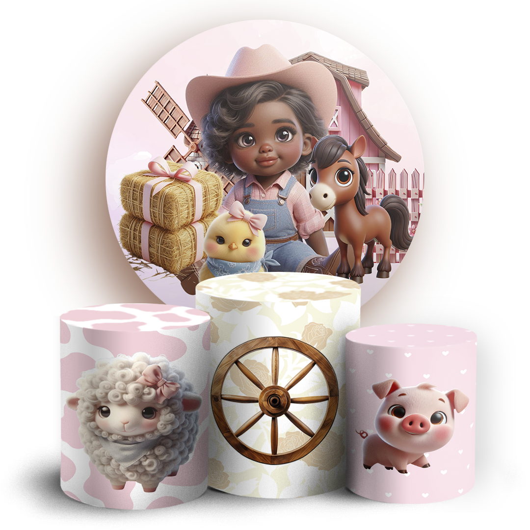 Capas Painel Redondo e Trio Cilindro Sublimado - Fazendinha