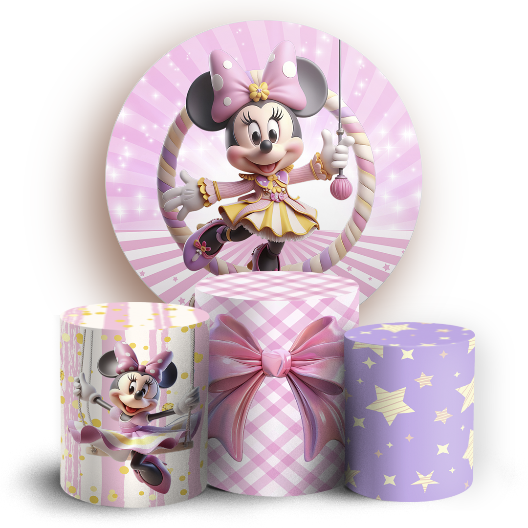 KIT Redondo e Trio Sublimado 3D - Mickey E Minnie Circo