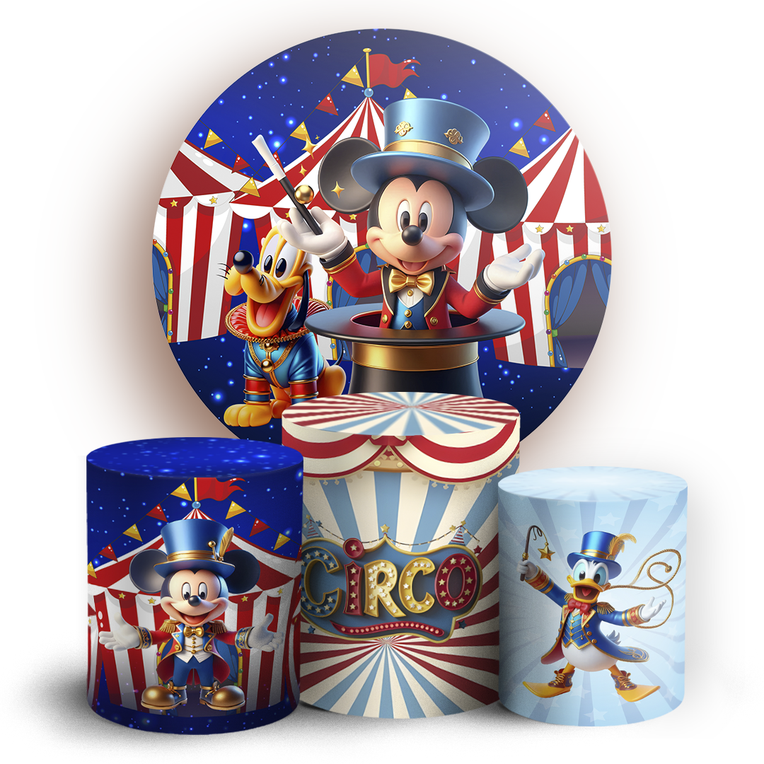 KIT Redondo e Trio Sublimado 3D - Mickey E Minnie Circo