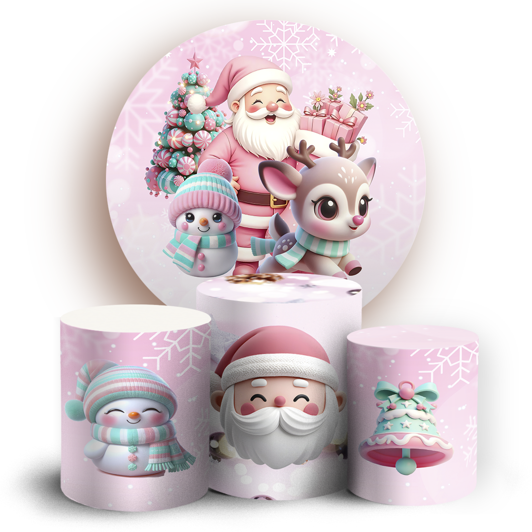 O kit Painel Redondo + Trio de capas para cilindros sublimados veste fácil, possuem acabamento overloque e elásticos nas bordas para facilitar a montagem da decoração