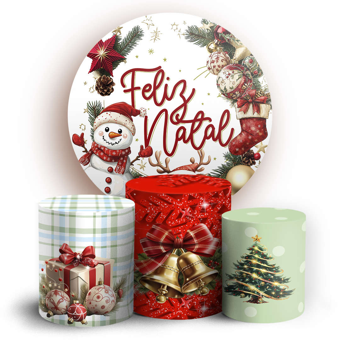 O kit Painel Redondo + Trio de capas para cilindros sublimados veste fácil, possuem acabamento overloque e elásticos nas bordas para facilitar a montagem da decoração