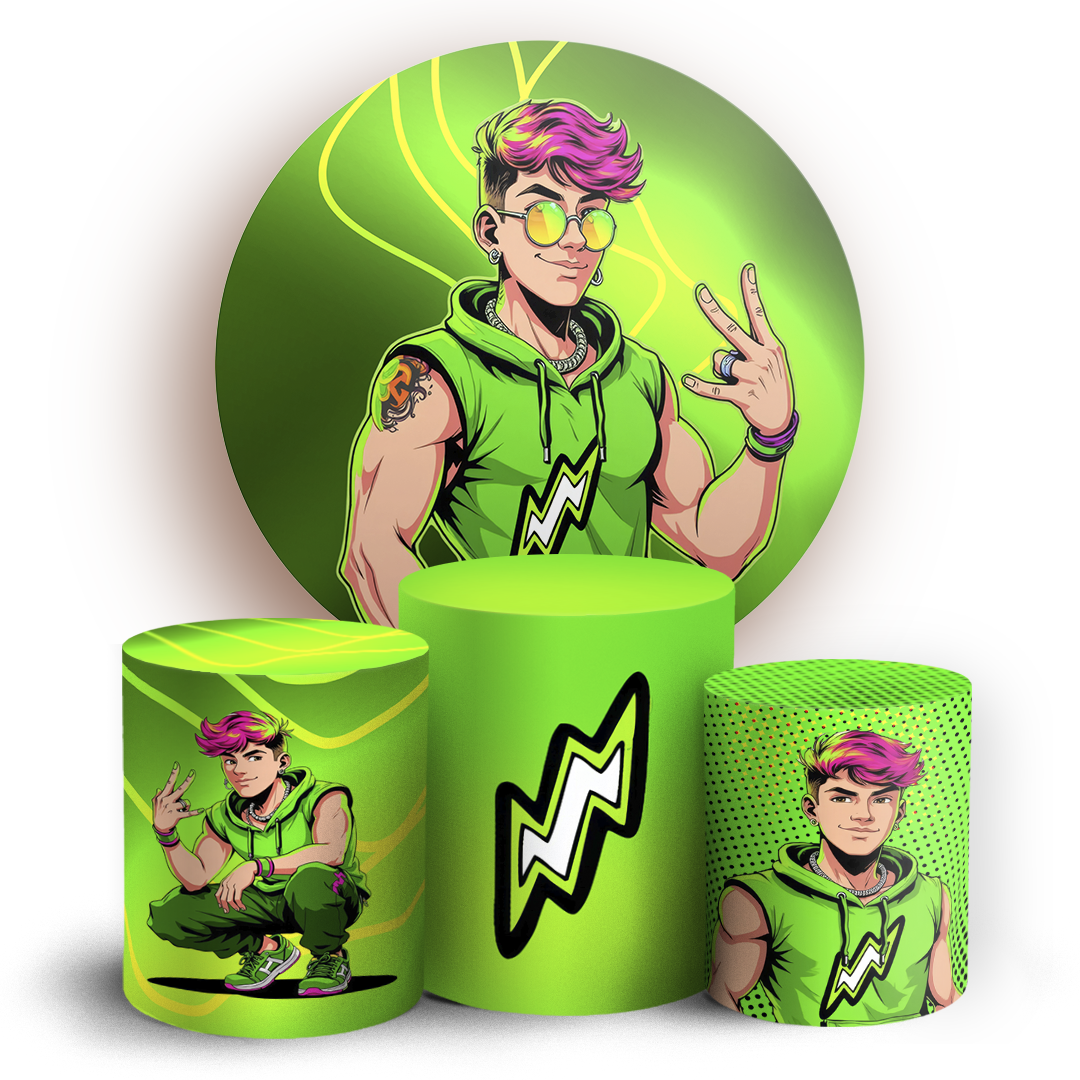O kit Painel Redondo + Trio de capas para cilindros sublimados veste fácil, possuem acabamento overloque e elásticos nas bordas para facilitar a montagem da decoração