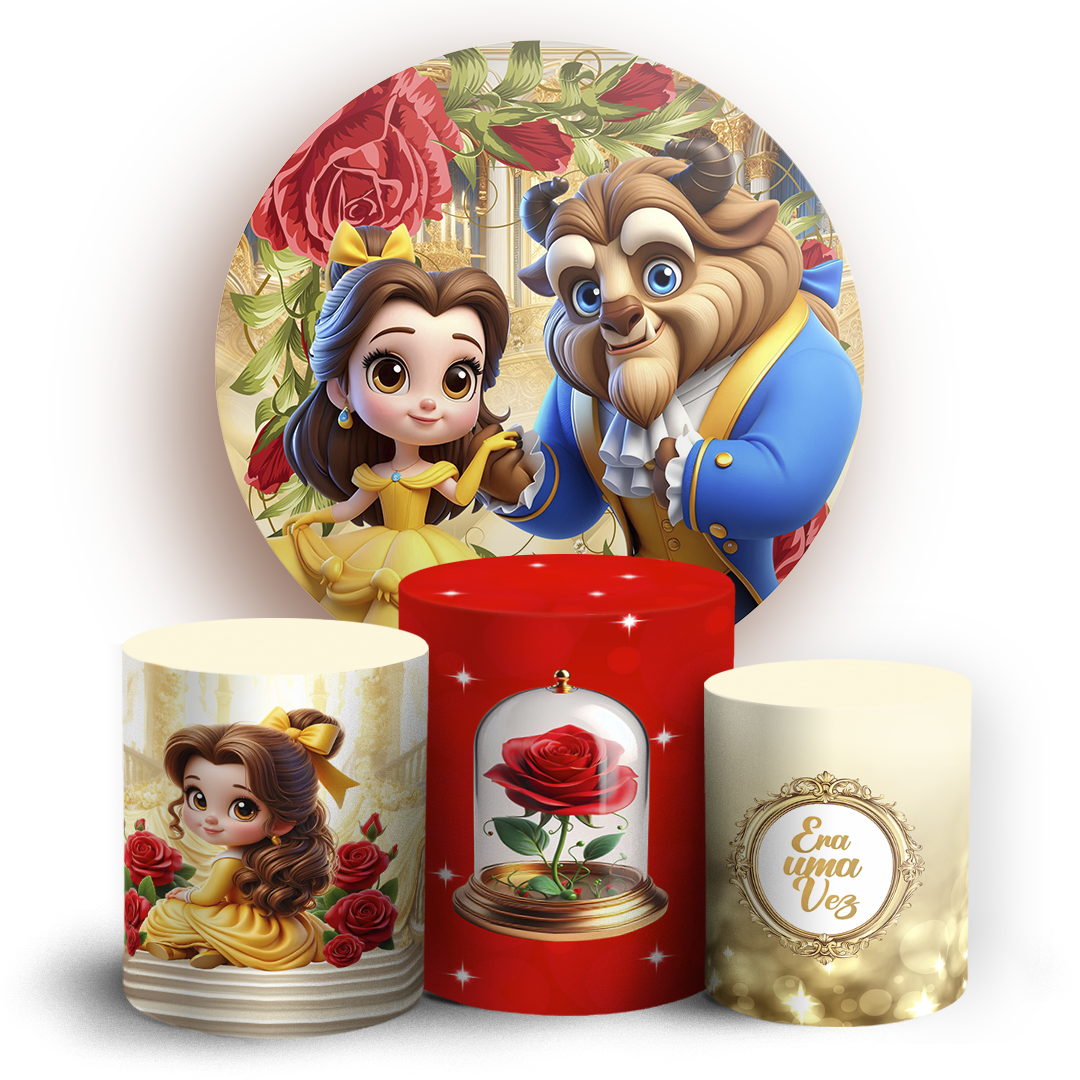 KIT Redondo e Trio Sublimado 3D - Princesa Bela