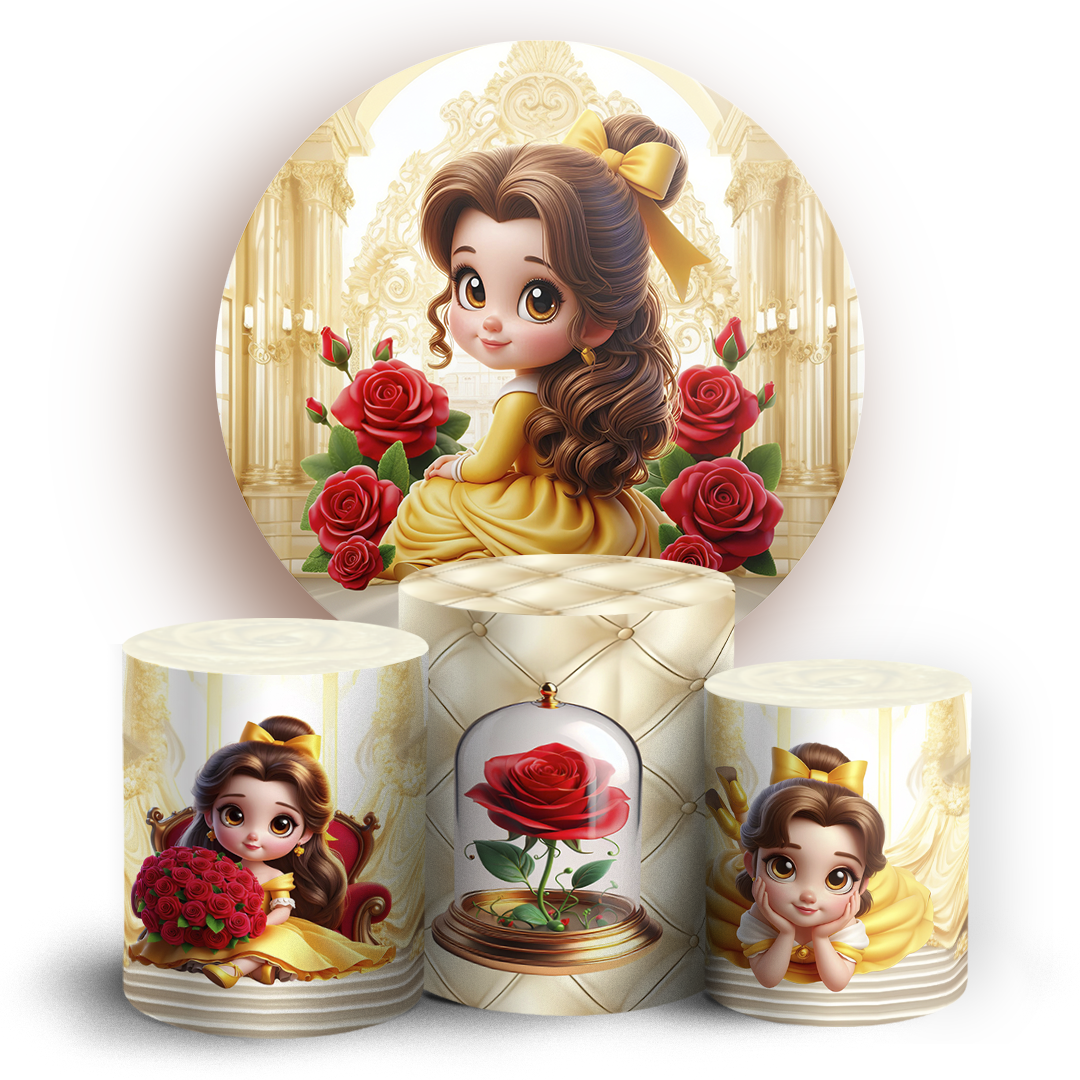 KIT Redondo e Trio Sublimado 3D - Princesa Bela
