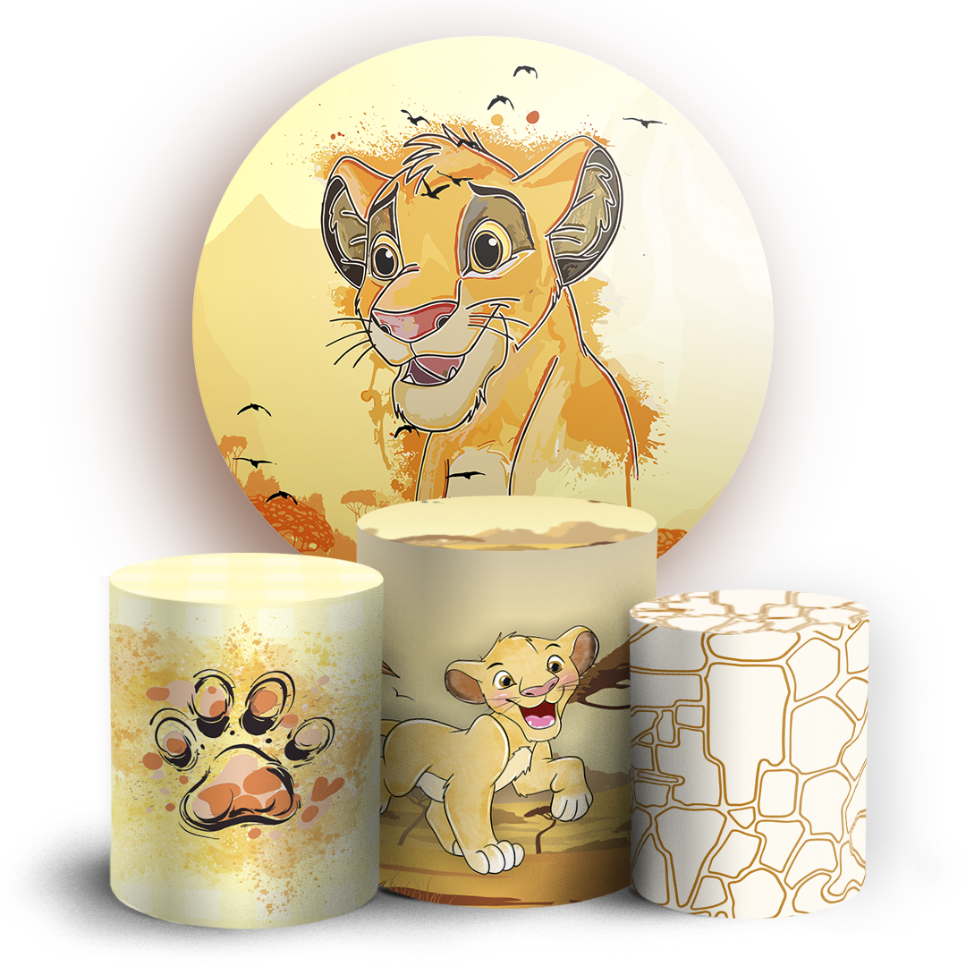 Capas Painel Redondo e Trio Cilindro Sublimado - Rei Leão Aquarela