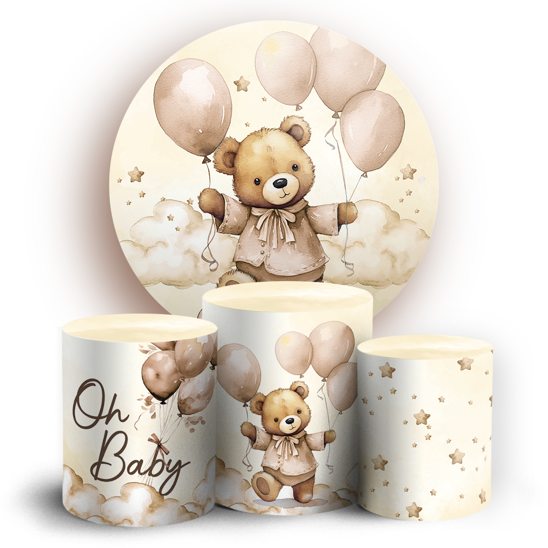 KIT Redondo e Trio Sublimado 3D - Ursinho Bege