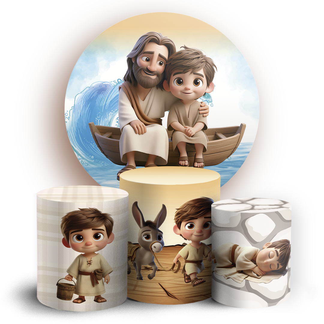 O kit Painel Redondo + Trio de capas para cilindros sublimados veste fácil, possuem acabamento overloque e elásticos nas bordas para facilitar a montagem da decoração