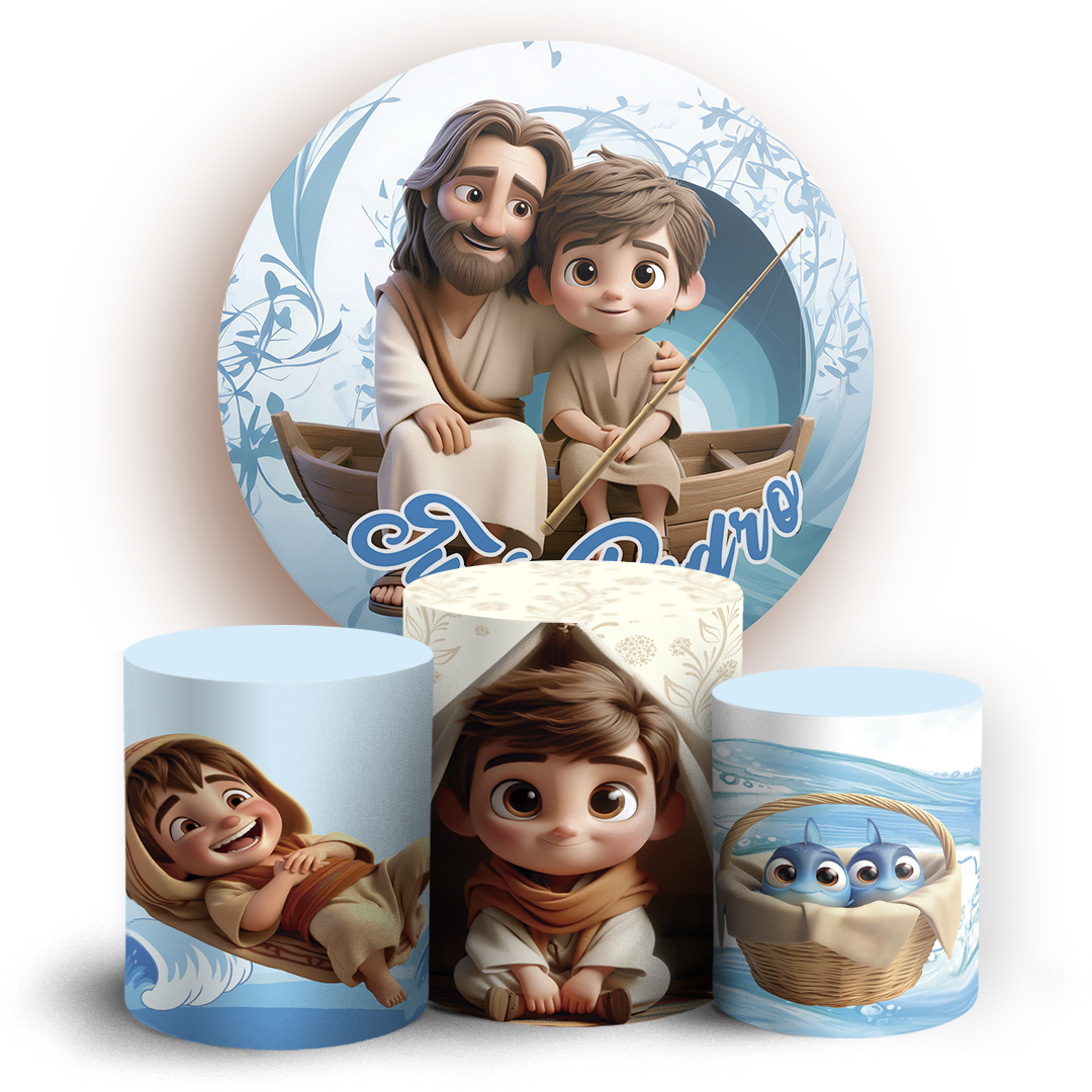 O kit Painel Redondo + Trio de capas para cilindros sublimados veste fácil, possuem acabamento overloque e elásticos nas bordas para facilitar a montagem da decoração