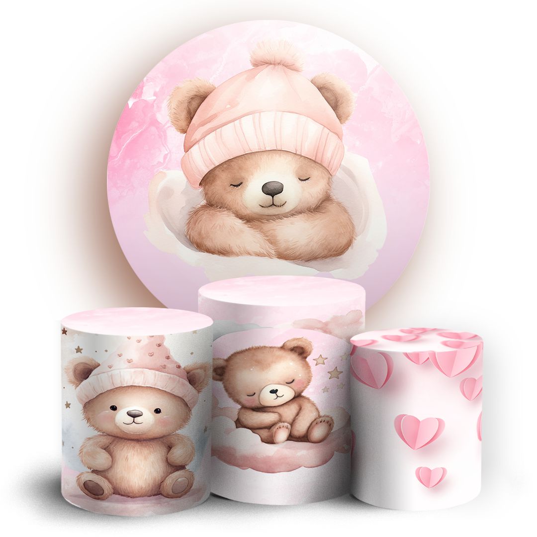 KIT Redondo e Trio - Ursinha Rosa - Sublimado 3D