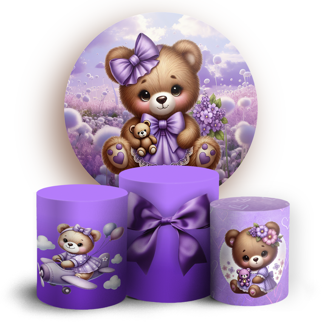 KIT Redondo e Trio - Ursinha Roxa - Sublimado 3D