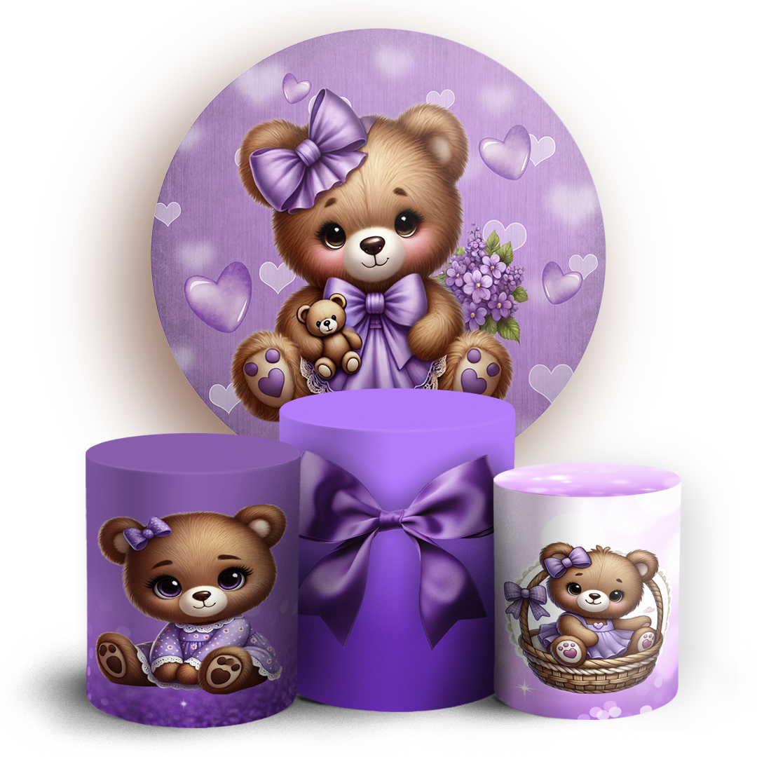 KIT Redondo e Trio - Ursinha Roxa - Sublimado 3D