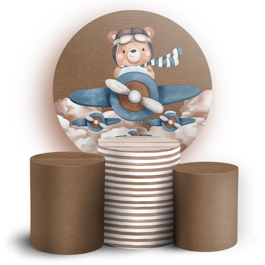 KIT Redondo e Trio - Ursinho Aviador - Sublimado 3D