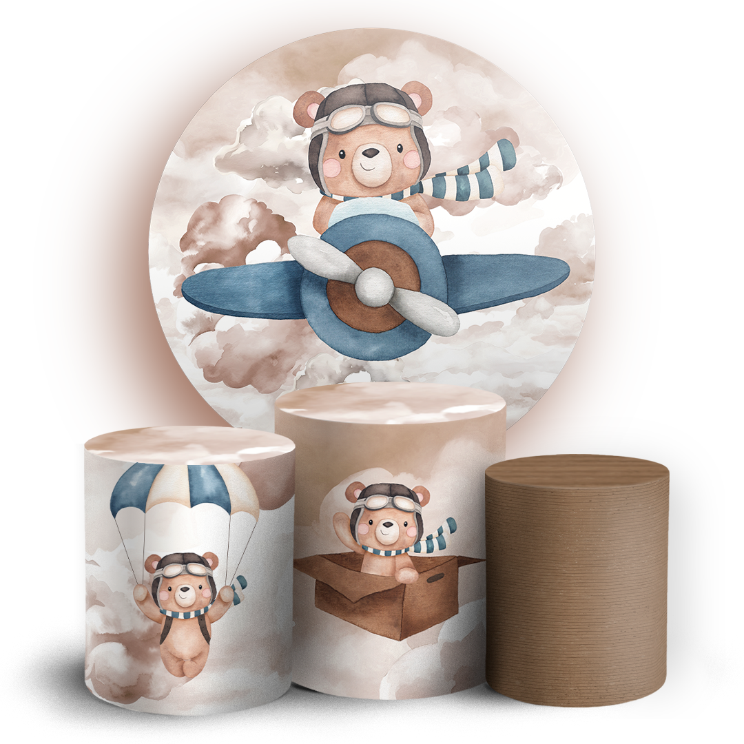 KIT Redondo e Trio - Ursinho Aviador - Sublimado 3D