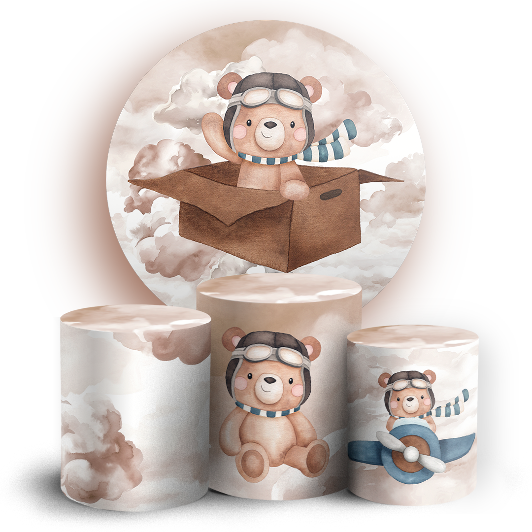 KIT Redondo e Trio - Ursinho Aviador - Sublimado 3D