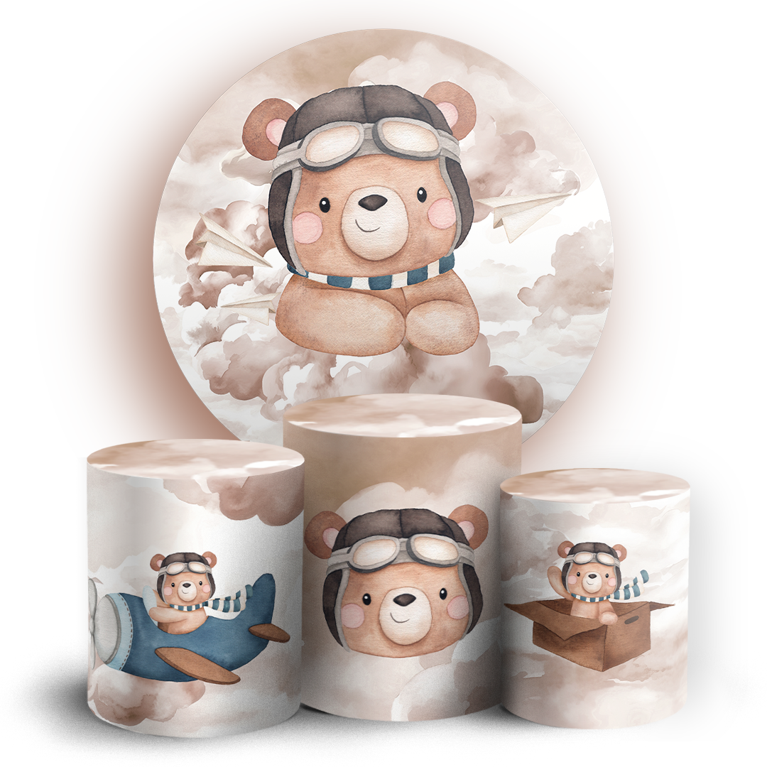 KIT Redondo e Trio - Ursinho Aviador - Sublimado 3D