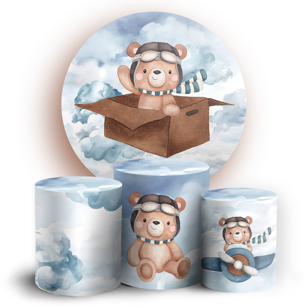 KIT Redondo e Trio - Ursinho Aviador - Sublimado 3D