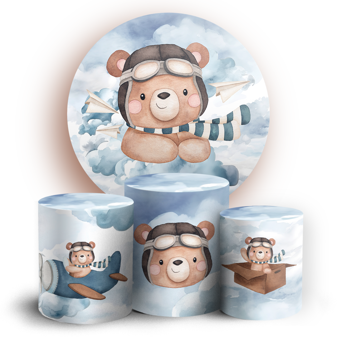 KIT Redondo e Trio - Ursinho Aviador - Sublimado 3D