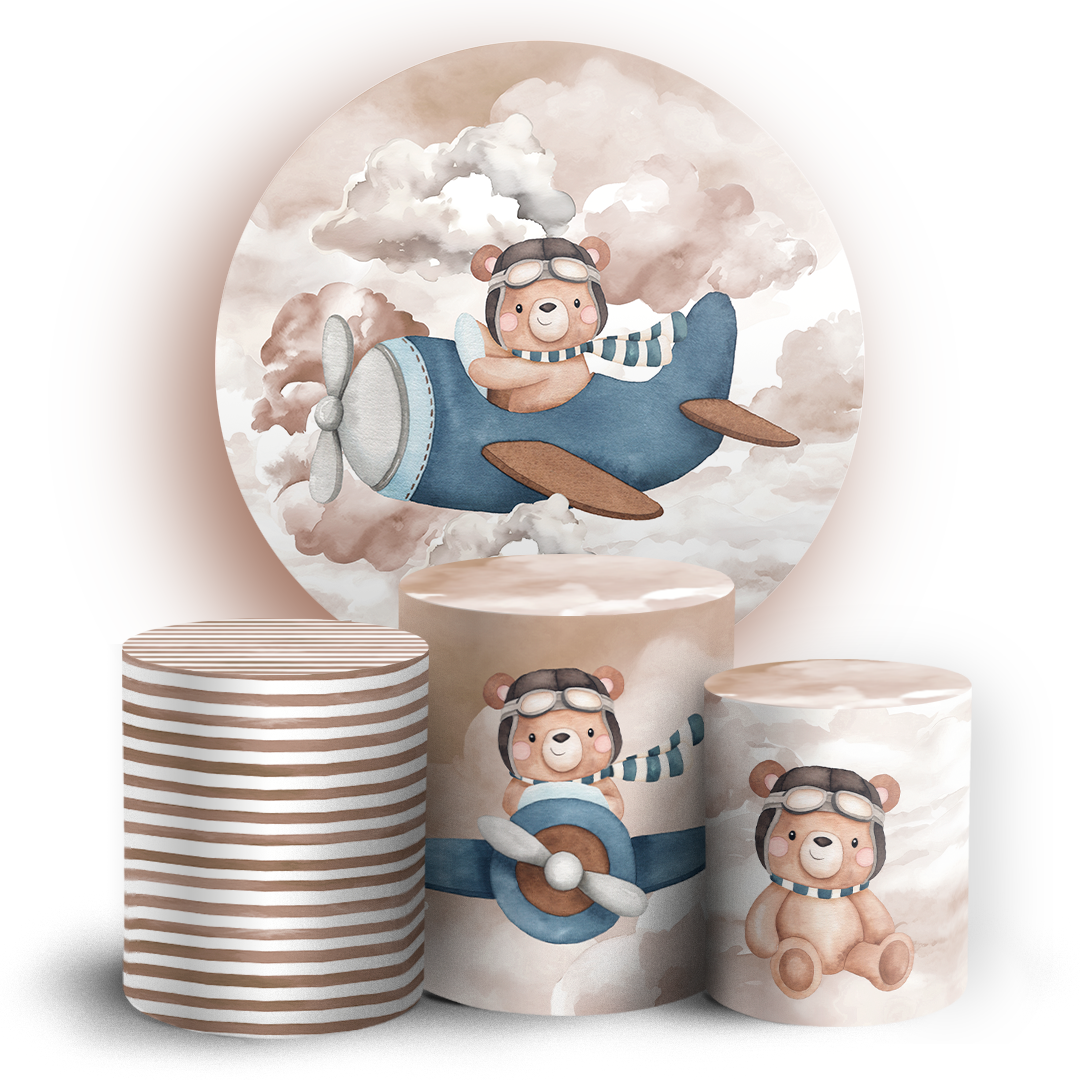 KIT Redondo e Trio - Ursinho Aviador - Sublimado 3D