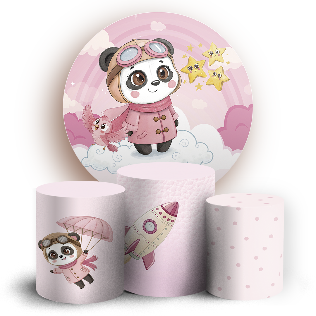 O kit Painel Redondo + Trio de capas para cilindros sublimados veste fácil, possuem acabamento overloque e elásticos nas bordas para facilitar a montagem da decoração