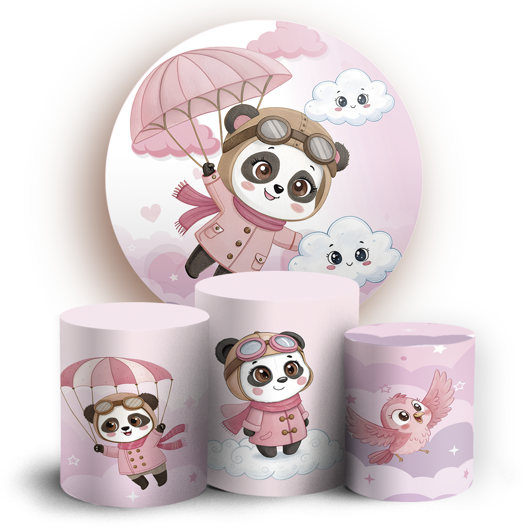 O kit Painel Redondo + Trio de capas para cilindros sublimados veste fácil, possuem acabamento overloque e elásticos nas bordas para facilitar a montagem da decoração