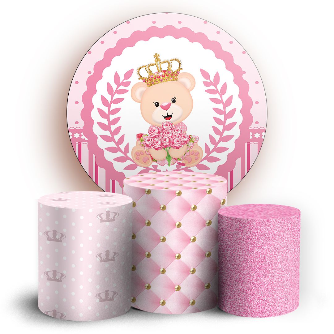 KIT Redondo e Trio - Ursinho Rosa - Sublimado 3D