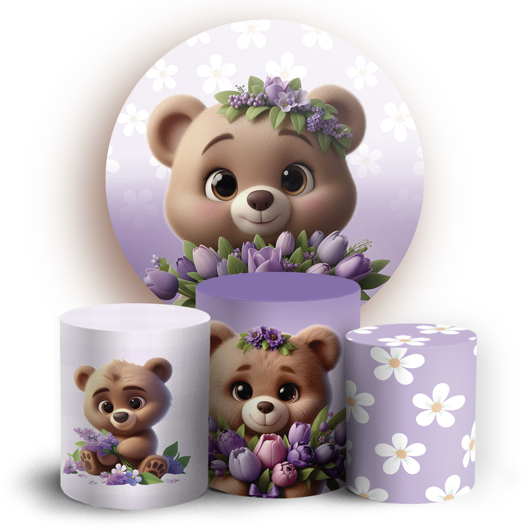 KIT Redondo e Trio - Urso Lilas - Sublimado 3D