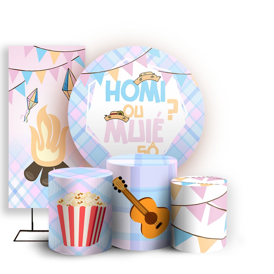 KIT Redondo Trio e Faixa - Cha Revelacao Festa Junina - Sublimado 3D