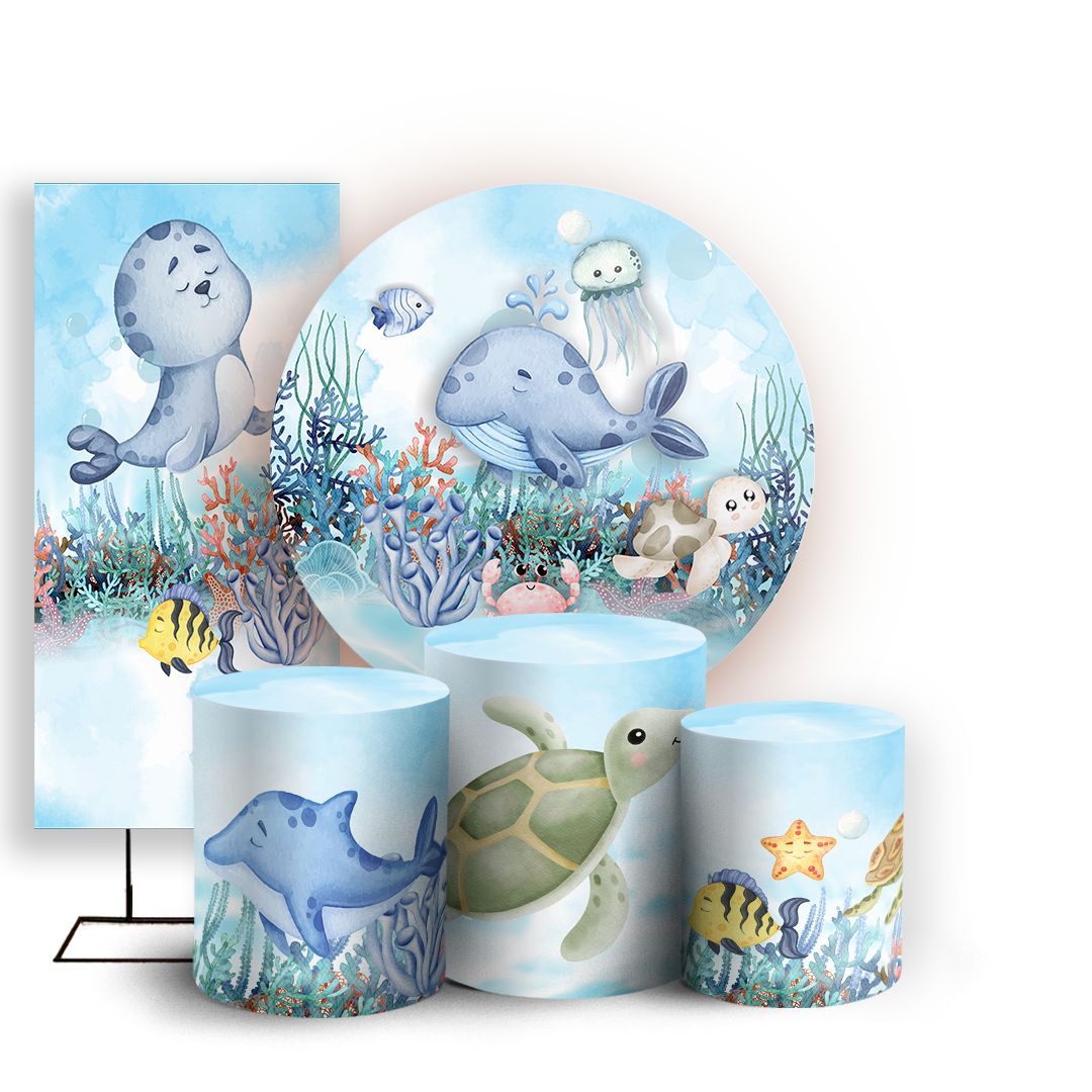 KIT Redondo Trio e Faixa - Fundo Do Mar - Sublimado 3D