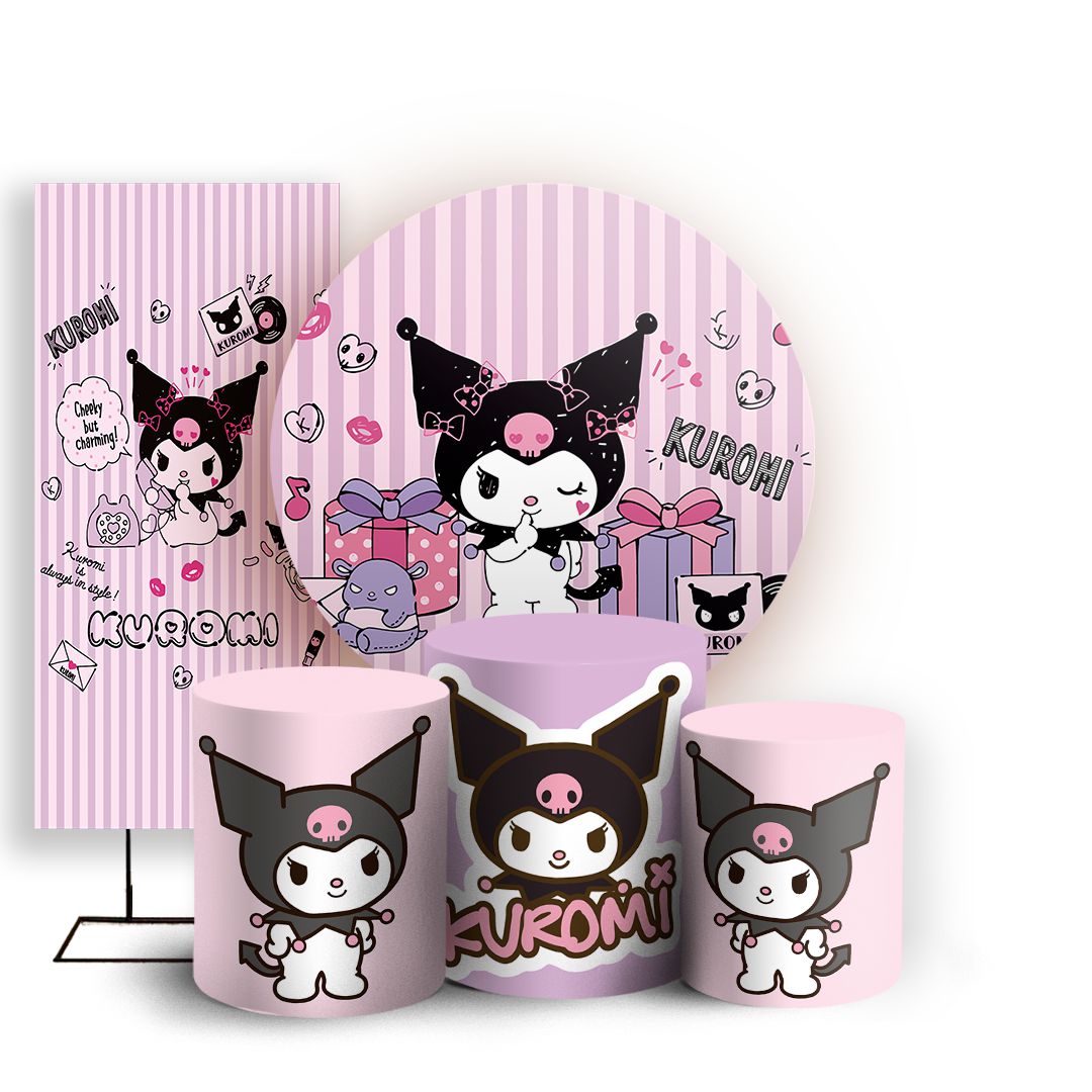 KIT Redondo Trio e Faixa - Kuromi Rosa - Sublimado 3D