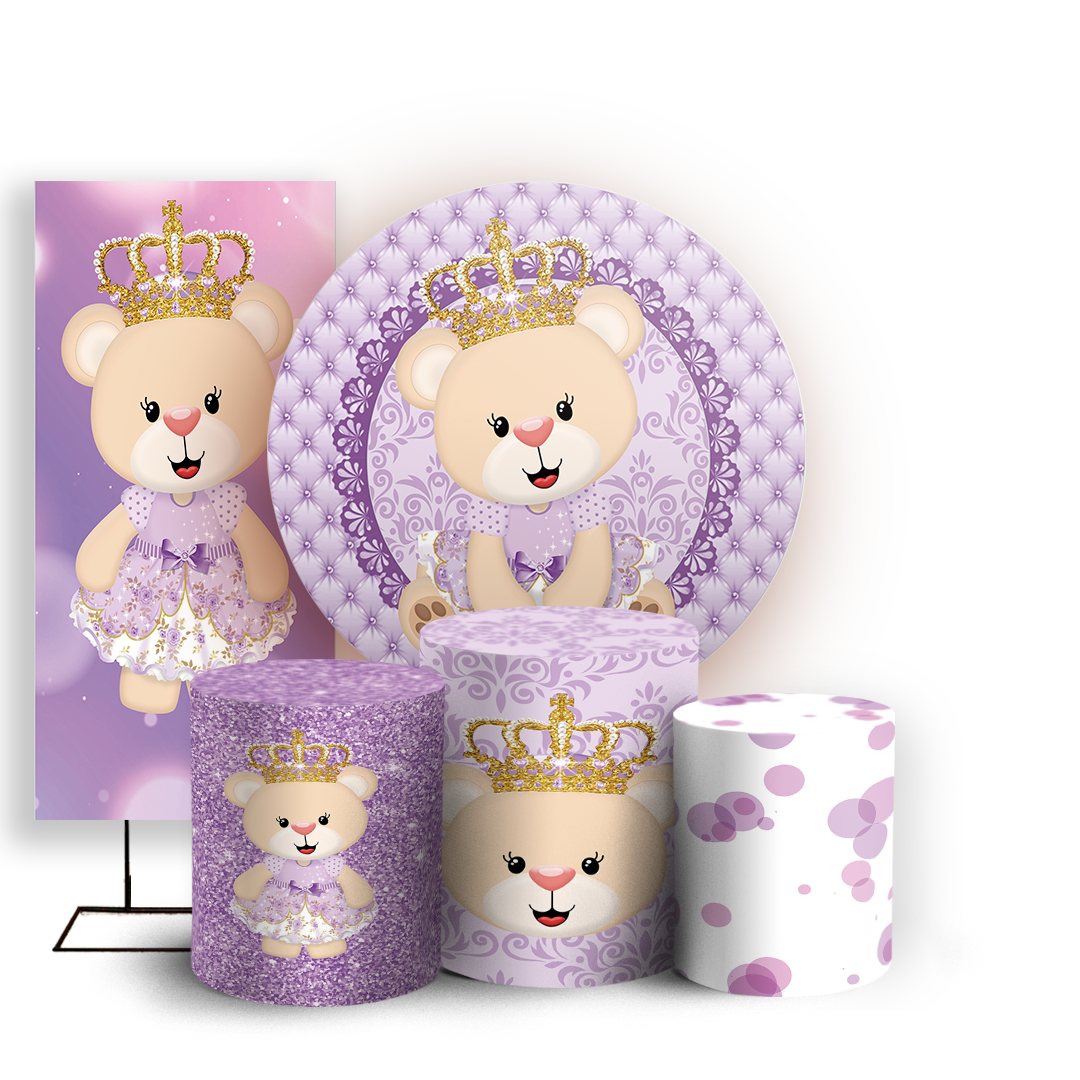 KIT Redondo Trio e Faixa - Ursinha Lilas - Sublimado 3D