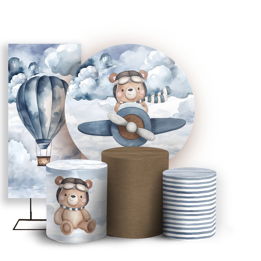 KIT Redondo Trio e Faixa - Ursinho Aviador - Sublimado 3D
