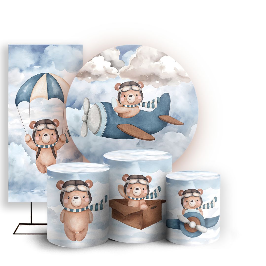 KIT Redondo Trio e Faixa - Ursinho Aviador - Sublimado 3D