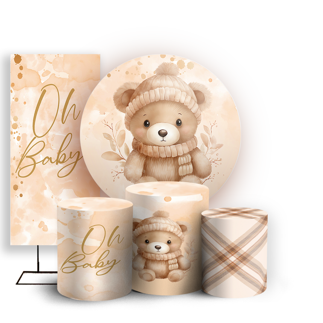 KIT Redondo Trio e Faixa - Ursinho Marrom - Sublimado 3D
