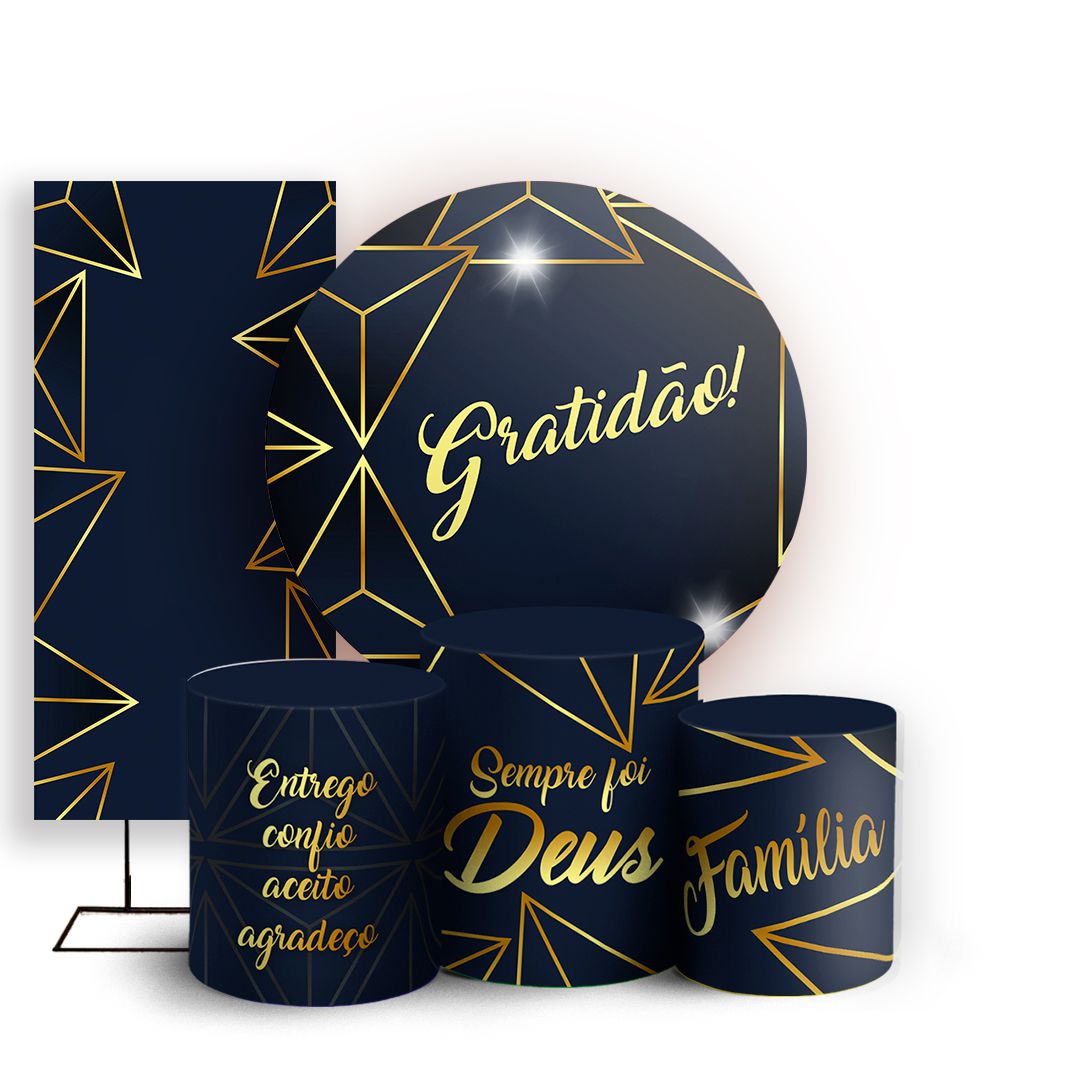 Com o kit Redondo, Trio de capas e Faixa lateral você criar uma decoração criativa para qualquer festa ou evento.