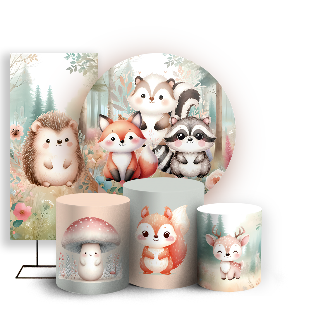 KIT Redondo Trio e Faixa - Animais Bosque Encantado - Sublimado 3D