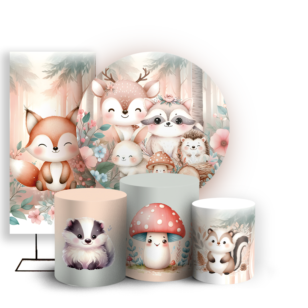 KIT Redondo Trio e Faixa - Animais Bosque Encantado - Sublimado 3D