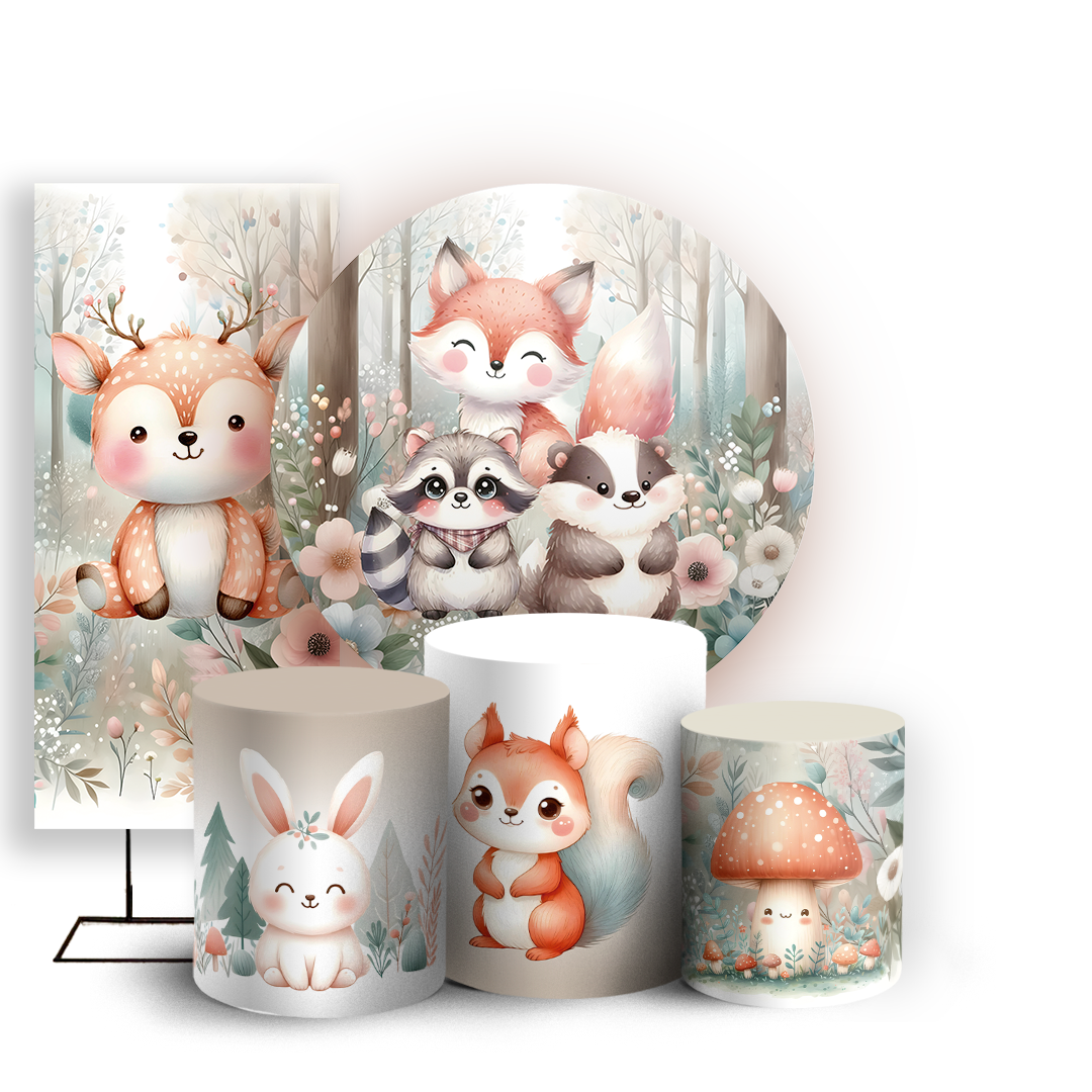 KIT Redondo Trio e Faixa - Animais Bosque Encantado - Sublimado 3D