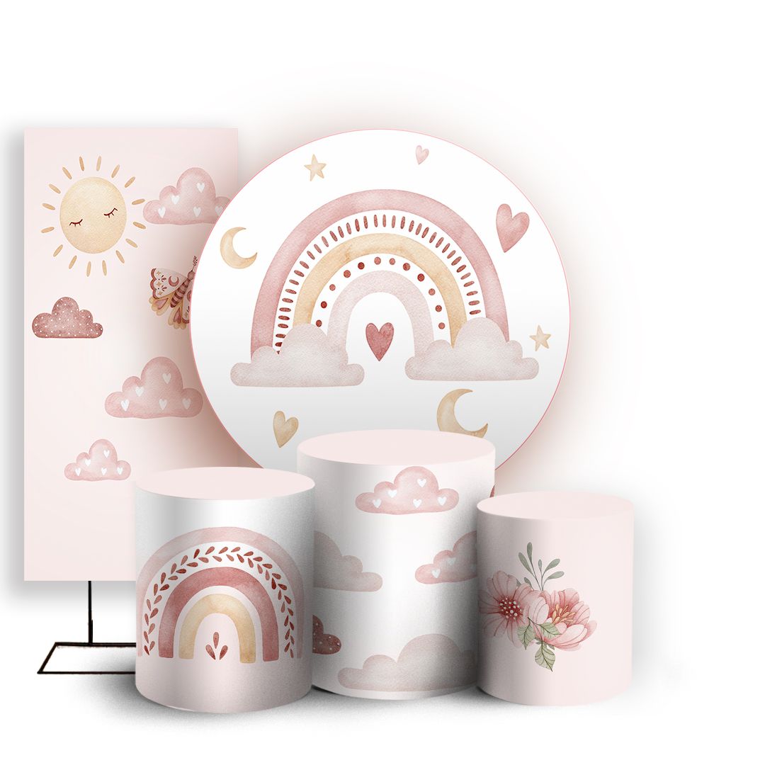 KIT Redondo Trio e Faixa - Arco Iris Bohos - Sublimado 3D