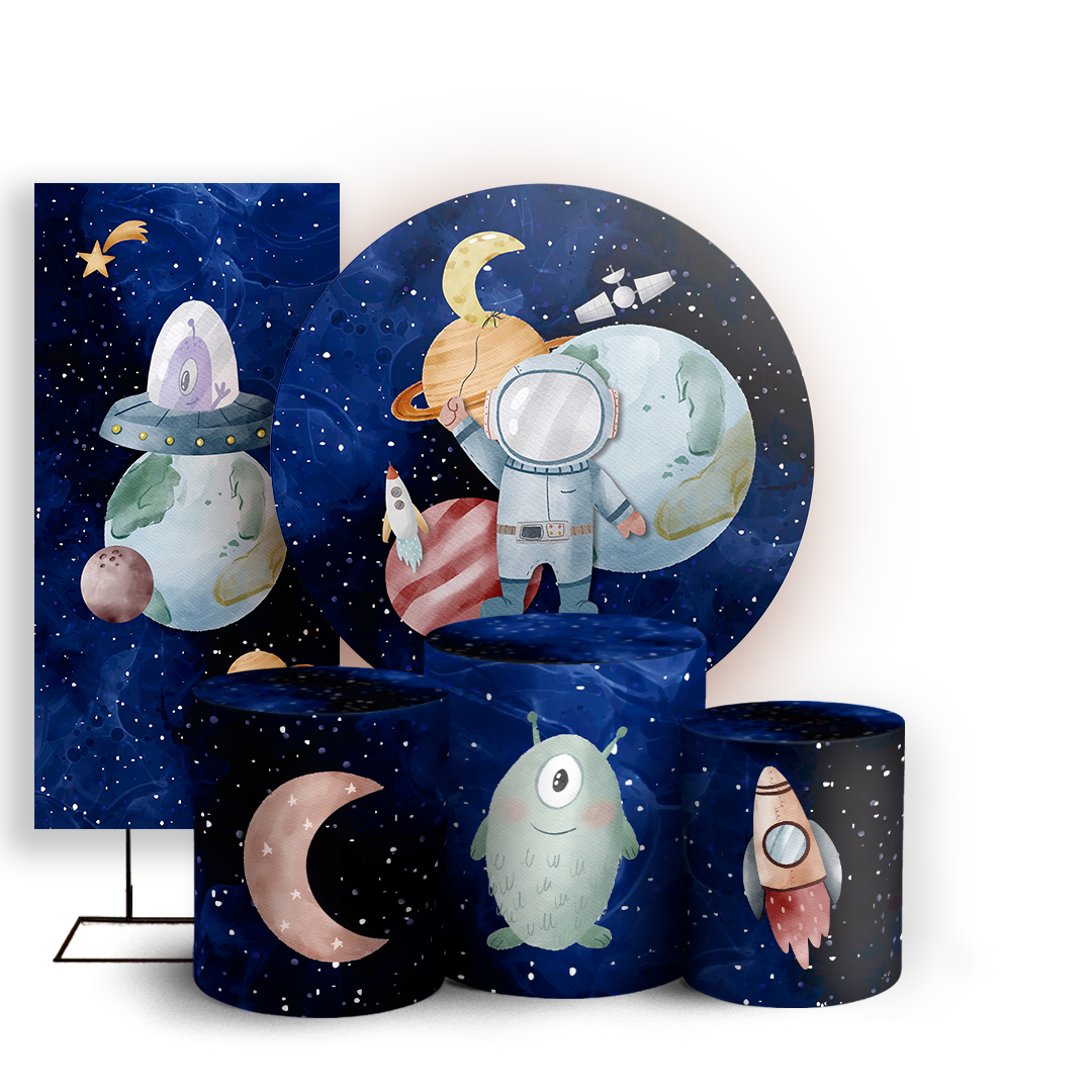 KIT Redondo Trio e Faixa - Astronauta - Sublimado 3D
